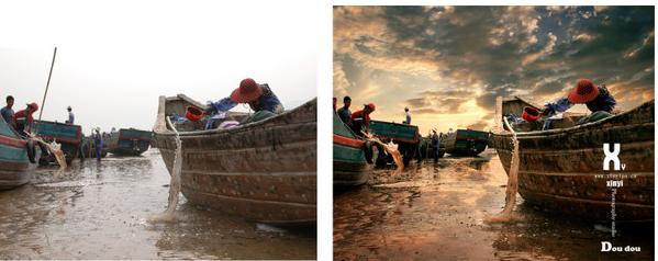 底,再用蒙版把四角压暗些,主要针对水面压暗,让画面平衡些,