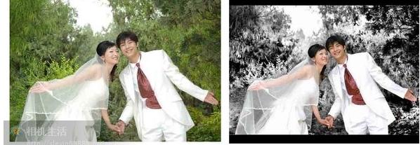 1 打开图片,复制背景层,执行图象-调整-通道混合器(灰色,+30,+60,+10,单色),执行滤镜-风格化-查找边缘,用色阶去掉杂点