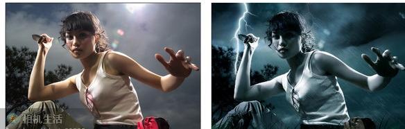放到原图上面,图层模式柔光,把除了天空之外的部分擦出来,盖印图层(Ctrl+Alt+Shift+E)