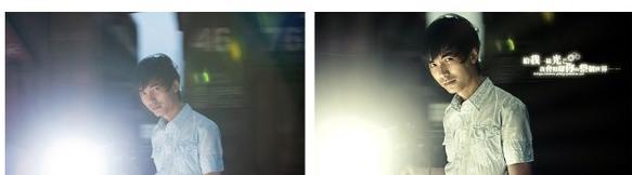 层混合模式为叠加,调整位置及大小,使其成为一个光源,去除一些多余的东西(自己决定),然后用径向放射模糊滤镜处理一下,让其形成发射的光束