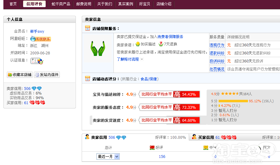 开始:开店是2009年高考毕业的时候,因为高考后暑假有3个月时间,实在无聊就开始想做一下淘宝!因为我家在中国第一蛇村,所以蛇类产品成了我在网上销售的好宝贝,因为爸爸在厂里跑销售的关系,我有了充足的货源!就这样,在我对淘宝一片迷茫的情况下,到银行办理网上银行,到淘宝注册了帐号,开始迷茫的淘宝生活!就这样,我开始上传产品,一点点在网上学习!在上传了10件商品之后,我终于拥有了自己的淘宝店铺!当时心里小小的开心了一下!然后就是开始慢慢的等待客人,那时的我不知道用计数器,不知道装修店铺,就这样,时间慢慢流逝,转眼间一个月过去了,除了一些广告,刷钻什么的,我没有做成过一个单子,甚至连一个客户询问宝贝都没有。。。。我开始对淘宝有些失去信心,不过还好的是,