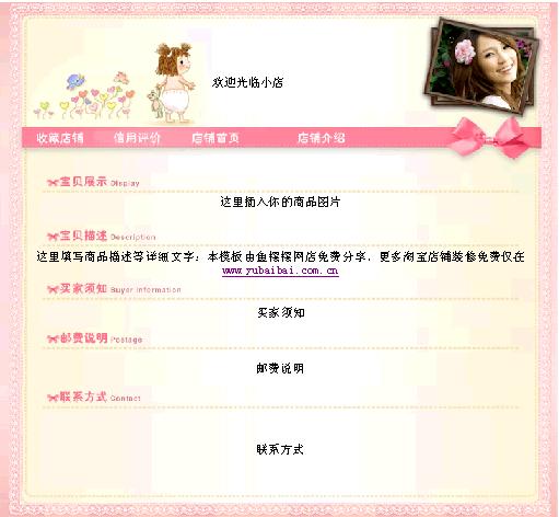 给大家分享一款免费的粉色温馨可爱淘宝店铺宝贝描述模板,模板预览截图如下: