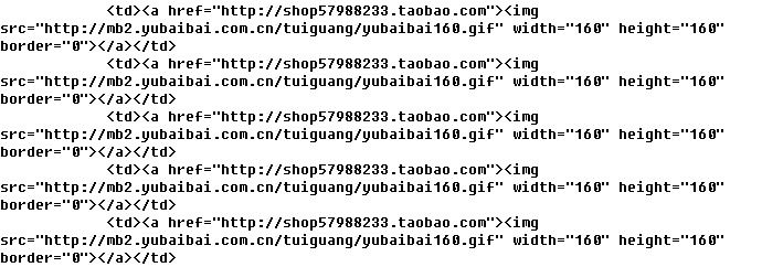 <td><a href="http://shop57988233.taobao.com"><img src="http://mb2.yubaibai.com.cn/tuiguang/yubaibai160.gif" width="160" height="160" border="0"></a></td>