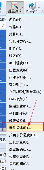 第四步:单击“批量编辑”,选择“宝贝描述模板”