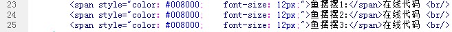 (2)修改模板中的提示文字"鱼摆摆1"为你自己的客服名字。然后将旺旺在线代码替换演示文字"在线代码"。另外两个客服也是采用同样的办法修改。