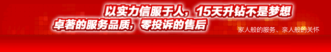 分享一款不错的淘宝店招图片,该图片非常简介。文字“以实力信服与人,15天升钻不是梦想,卓越的服务品质,零投诉的售后”非常有煽动性。