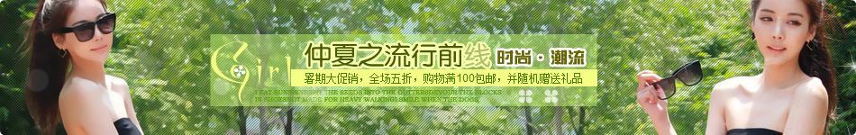 分享一份绿色清凉的淘宝店招图片素材,女装、夏装、珠宝饰品、箱包、眼镜、居家生活类店铺均可以使用该淘宝通栏店招图片。