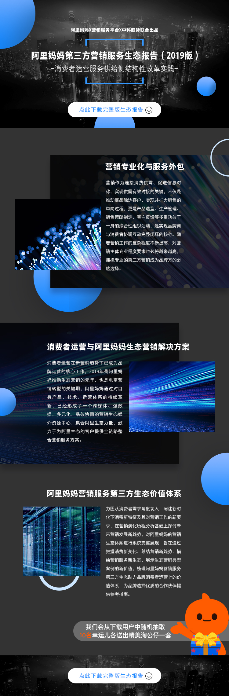 阿里妈妈联合趋势中科发布《阿里妈妈第三方营销服务生态报告(2019版)》,从消费者需求角度切入,以阿里妈妈在消费者运营服务供给侧结构性改革实践经验为沉淀,阐述新时代下消费新特征及其对营销工作的新要求,对阿里妈妈第三方营销服务生态体系进行系统完整展现,为品牌商家选择优质的合作伙伴提供参考指南。