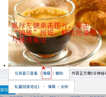 (5)黏贴代码,然后再次点击“代码模式”切换按钮,回到视图编辑模式,然后单击对应的图片,在打开的窗口单击编辑,即可完成图片轮播图片的替换和宝贝商品链接的添加工作。
