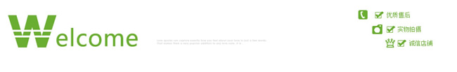 分享一份简洁清爽的绿色绿色淘宝店招banner图片,该店招左侧绿色的欢迎光临文字加右侧的店铺说明小图标,中间留空,可以添加店铺名称等信息。其预览截图如下: