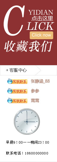 分享一份不错的190淘宝左侧旺旺客服中心模板代码,其预览效果如下: