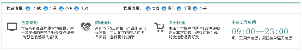 分享一份含旺旺在线客服、购物流程、淘宝店铺工作时间的950宽铁绿色淘宝店铺尾部装修模板代码。该模板预览效果图如下: