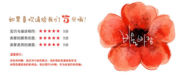 本淘宝5分好评温馨提示图片“请给我们5分好评哦”的下载地址是:/uploadfile/201305/8/172500653.rar