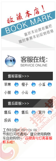 本淘宝旺旺在线客服模板代码的下载地址是:/uploadfile/201306/24/1425322073.rar