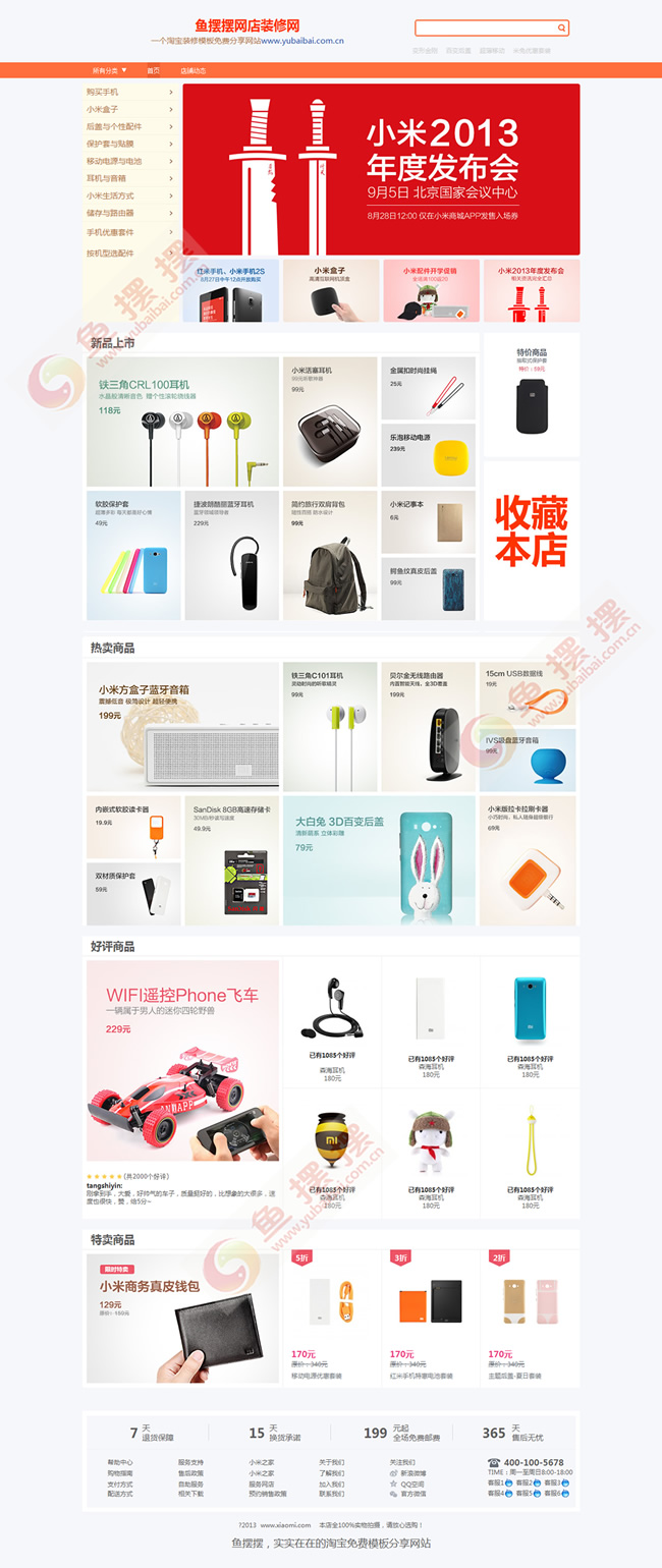 小米3手机即将发布,作为一个小米爱好者,鱼摆摆这里特别制作了一份高仿小米手机官网商城的旺铺专业版淘宝装修模板,该模板适合手机店、电脑网店、创意手工、五金工具、电子电器、居家饰品等淘宝网店使用。