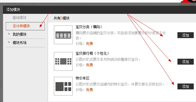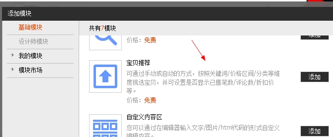 (5)添加官方自带的宝贝推荐模块(可以自动添加宝贝商品)