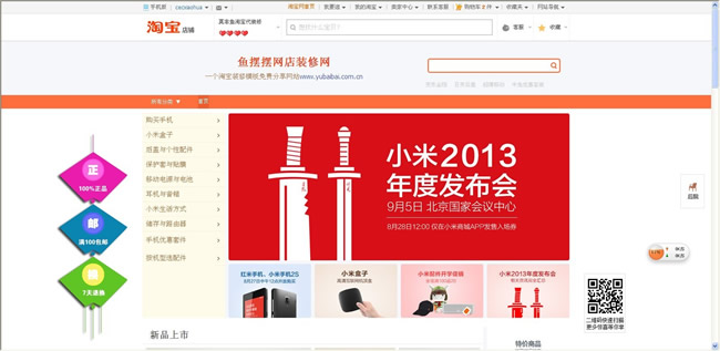 如果你想自定义或者修改完善该背景固定图片(如修改了包邮价格、二维码图片),制作好背景图片后,上传到淘宝图片空间,更换“图片地址”为真实图片链接地址,然后黏贴代码到导航条的显示设置里即可。