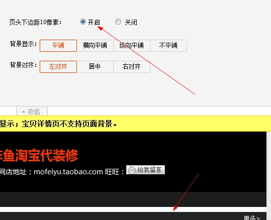 啃爹的淘宝终于进步了,今天准备发布新的淘宝装修模板,发现淘宝新增店招下面“页头下边距10像素”开启关闭功能。