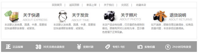 代码中的关于快递、关于发货、关于照片、退货说明等温馨提示内容均为文字,如果你觉得不合适,可以在代码中,直接修改文字内容即可。