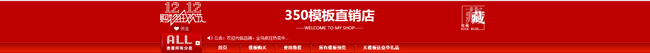 分享一套红色喜庆,尺寸为1920x150的全屏效果淘宝双十二淘宝全屏店招模板代码。本店招含店铺公告、店铺名称、双12logo和店铺收藏功能。