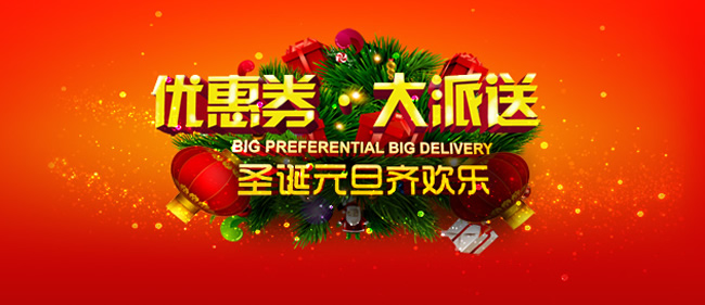 分享一份主题为“优惠券 大派送,圣诞元旦齐欢乐”的大图效果淘宝店铺优惠券图片素材,该淘宝圣诞元旦节图片素材psd源文件哦,方便懂ps的卖家朋友再优化完善。为方便新手卖家使用,鱼摆摆分别整理提供了3种尺寸图片:1920全屏版、950通栏店铺首页使用版、750宝贝描述版。