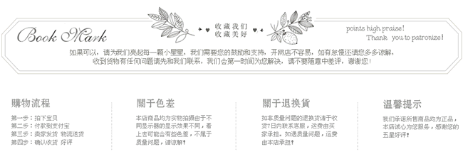 温馨提示:含店铺公告、购物流程、拍照色差、退换货等说明内容。