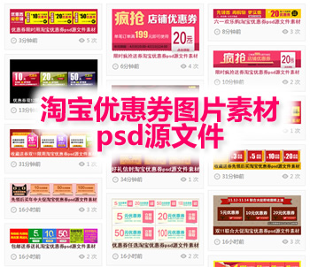小编为大家专门收集整理了超多的淘宝优惠券图片素材,这些素材均为psd源文件。大家需要懂photoshop才能使用哦。这些淘宝优惠券图片有各种尺寸,含190宽放在店铺左侧的,含750宽以内放在宝贝描述里的,含950宽淘宝店铺首页中安装的。风格样式也非常多,大家可以根据自己网店的风格,选择合适的优惠券图片。