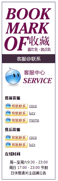 190左侧淘宝旺旺客服淘宝模板在线制作地址:http://www.yubaibai.com.cn/tool/kf/190B221/