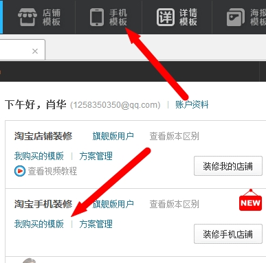 (a)如果你只是购买了一个手机模板,在后台个人中心的中间,手机装修区,点“我购买的模板”,应用手机模板