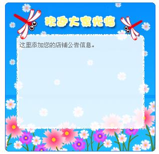 今天分享一款有着美丽小花、蓝色背景的可爱小蜻蜓淘宝公告栏模板,希望大家能够喜欢。