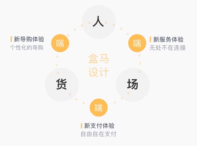 ▲ 盒马新零售框架,以及设计如何介入提升用户体验