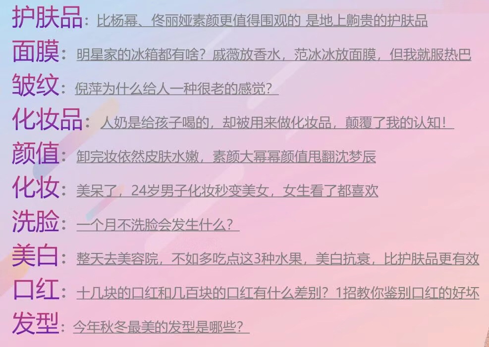 3、小码头分析美妆类内容阅读时段发现,人们普遍选在21点至23点之间关注美妆内容。下图为“美妆类人群最具话题性热词”,大家可选择性看一下。