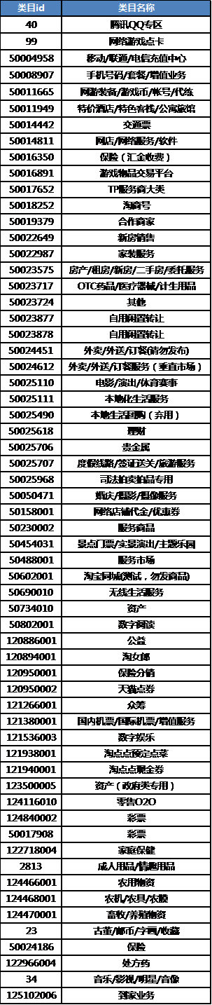 14. 附:淘宝购物券不支持使用的类目如下: