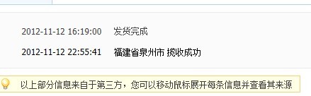 光棍节,天猫赚得盘满钵满,我们小卖家却连流量都没有,可怜啊!商城双十一火了一把.我们小卖家就被冷落了.可能这一个月都没啥订单了,上帝该买的都有在双十一那天抢着消费了。好不容易我的小店才销售了几单,为了这几单,我心里一直在打鼓。会不会又遇上牛快递?这单,11号发的货,本来一天到泉州的,走了快4天!