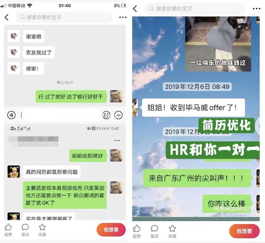 这些卖家们的业务不仅包括改简历,还有很重要的一块是面试培训和模拟面试,效果好的时候,有可能一面当场就拿offer。