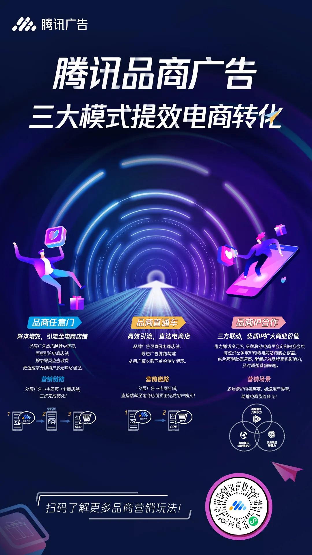 作为应对,腾讯广告通过品商广告,为品牌提供了一站式的电商站外导流解决方案。根据品牌的渠道和链路差异,品商广告提供了品商直通车、品商任意门和品商IP合作三种模式。