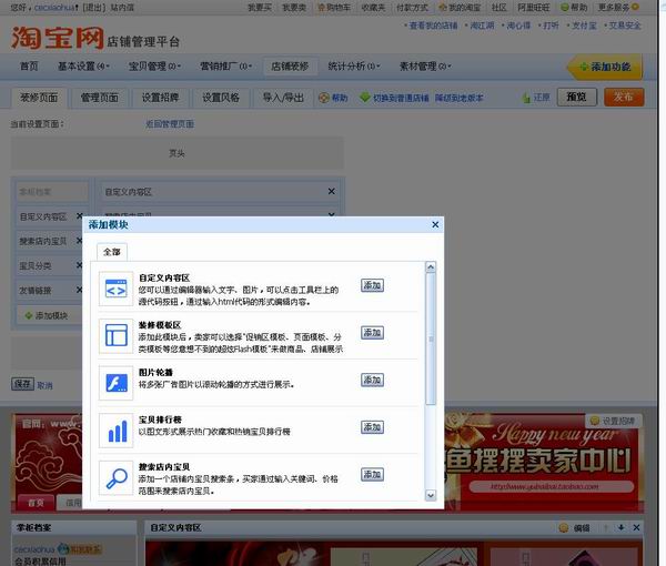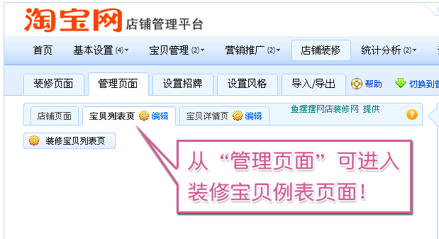 2、 宝贝列表页可以进行装修。