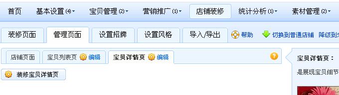 3、 宝贝详情页可以进行装修。