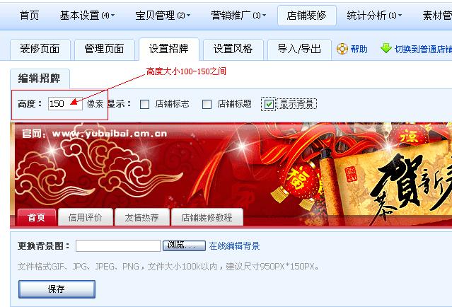 4、 店招的高度可以调整,区间:100-150