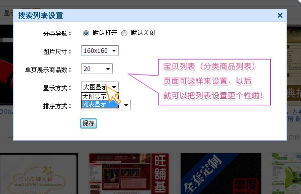 10、宝贝列表页中的宝贝列表模块可以进行设置,显示宝贝数也可以进行调整